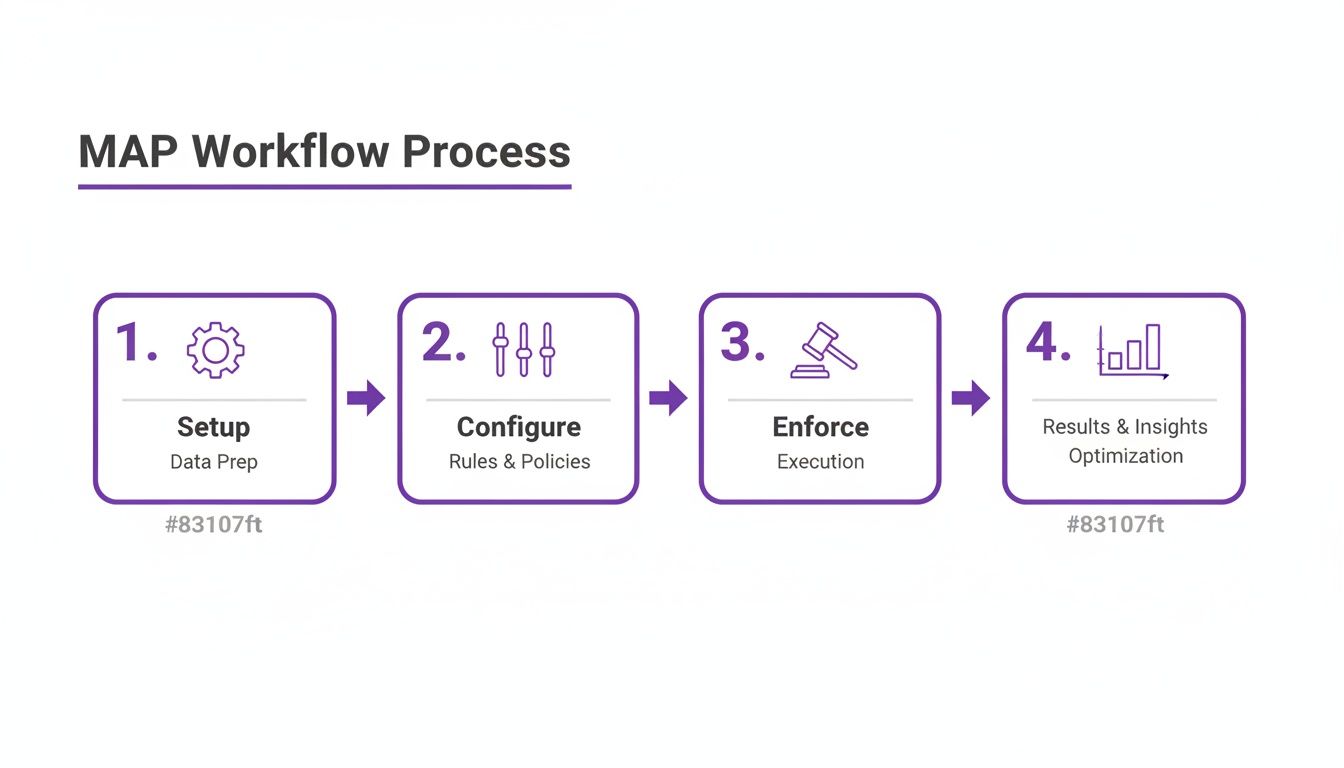 As shown, effective MAP management is a continuous cycle of setup, configuration, enforcement, and analysis, not a one-time task.