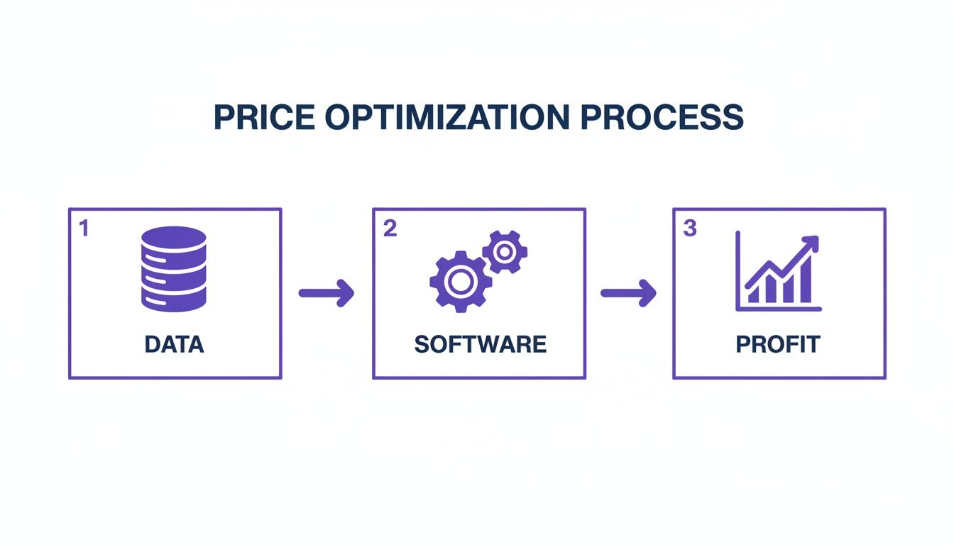 Price optimization software is more than an advanced repricing tool. It's a sophisticated system that uses data and algorithms to identify the ideal price for a product—the point where sales velocity and profit margin are perfectly balanced. For B2B decision-makers, this technology turns pricing from a reactive task into a strategic, profit-driving function.