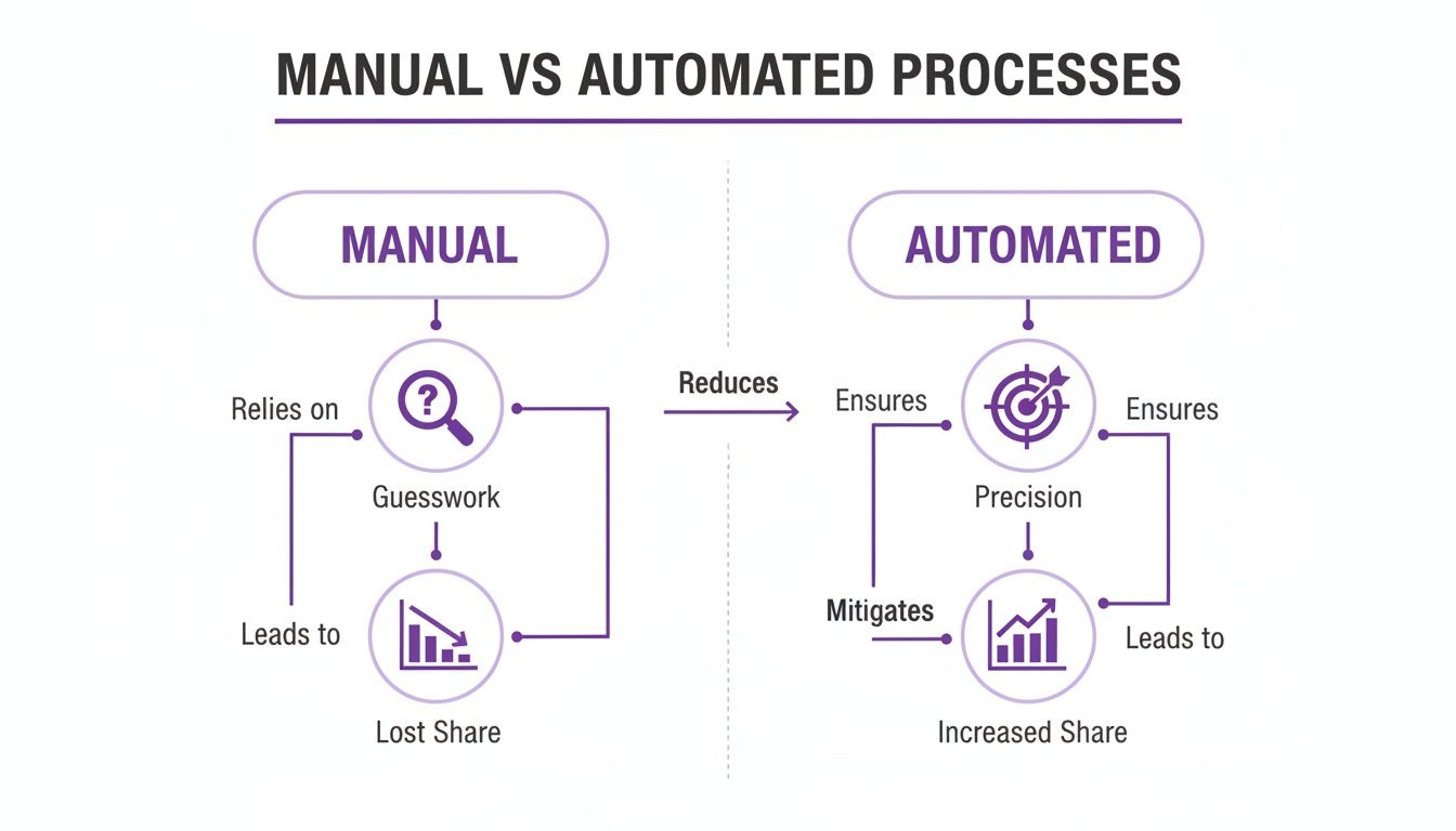 As the infographic shows, relying on manual checks means you’re always a step behind, missing opportunities and losing ground. A dedicated software platform provides the clarity to make confident, profitable decisions every time.