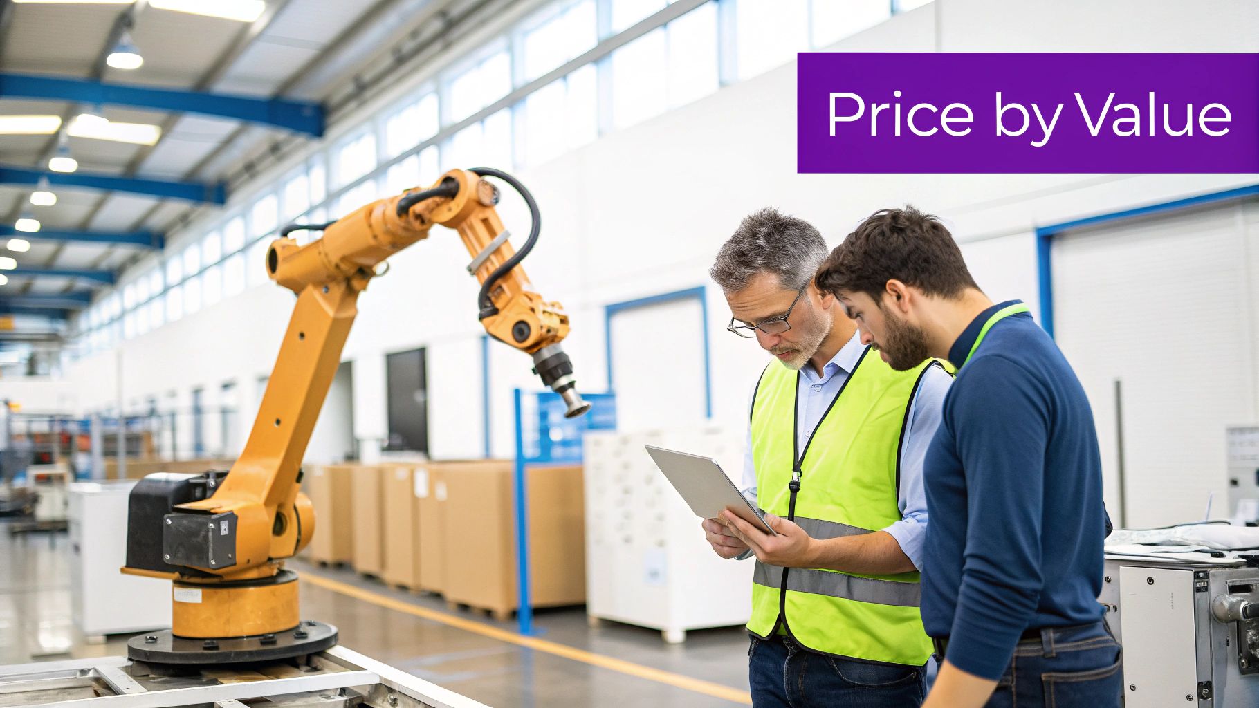With a value-based model, the price is anchored to the economic benefit it generates. You justify the price by quantifying the labor hours it saves a factory, the measurable reduction in safety incidents, or the direct increase in production throughput. The price reflects the outcome, not the inputs.