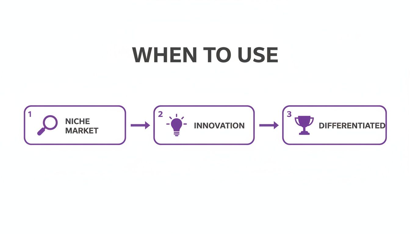 - You're Solving a Nasty Problem for a Niche Market: If you are the go-to solution for a specific, high-cost problem within a defined customer segment, those customers will often pay a premium for a perfect fix. The greater the pain point, the more they value the solution.