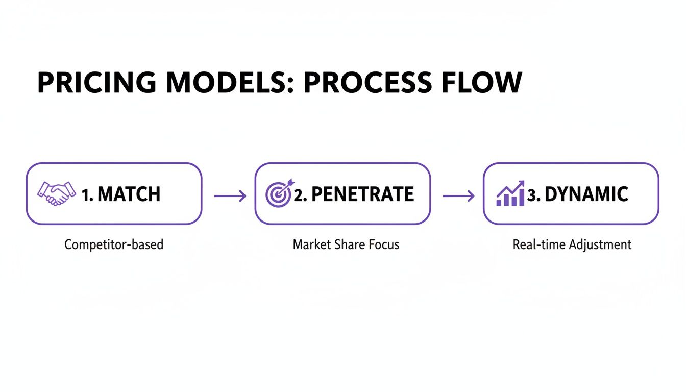 The commercial logic is compelling. You can automatically increase prices to capture margin when a competitor goes out of stock or instantly lower a price to remain competitive during a sale. However, its effectiveness depends entirely on clean, real-time data. This is where automated platforms such as Market Edge Monitoring become essential, providing the intelligence needed for these split-second decisions.
